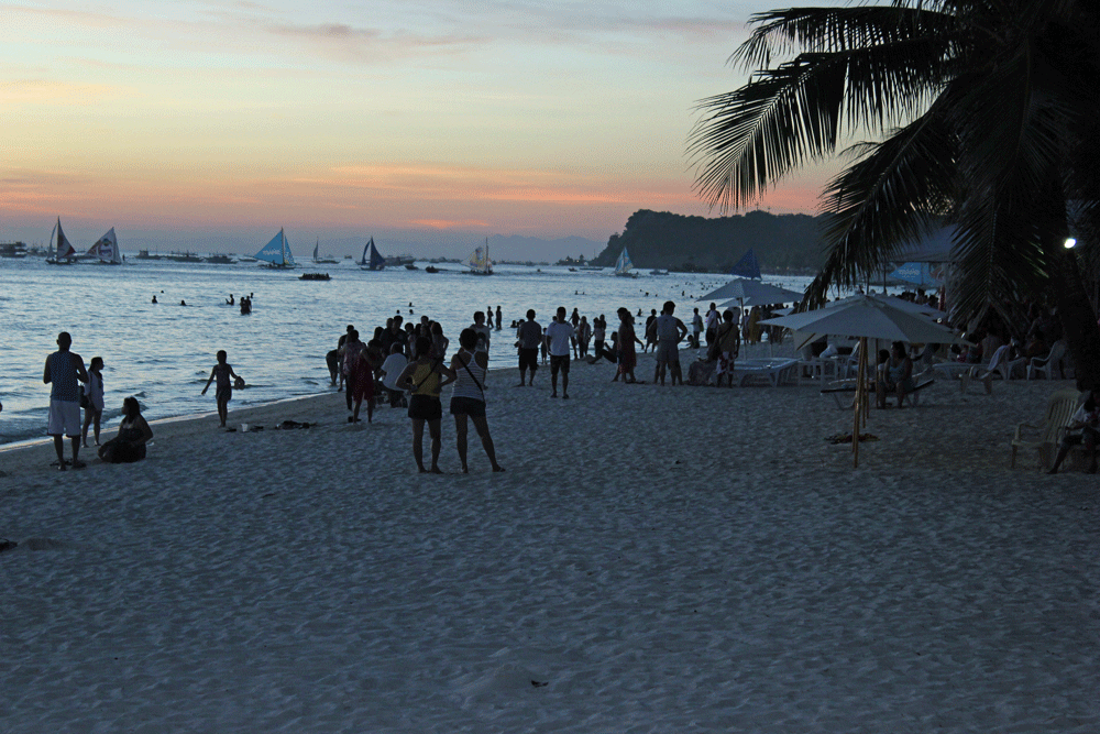 THE CROWDS INCREASE AS THE SUN LEAVES THE HORIZON.